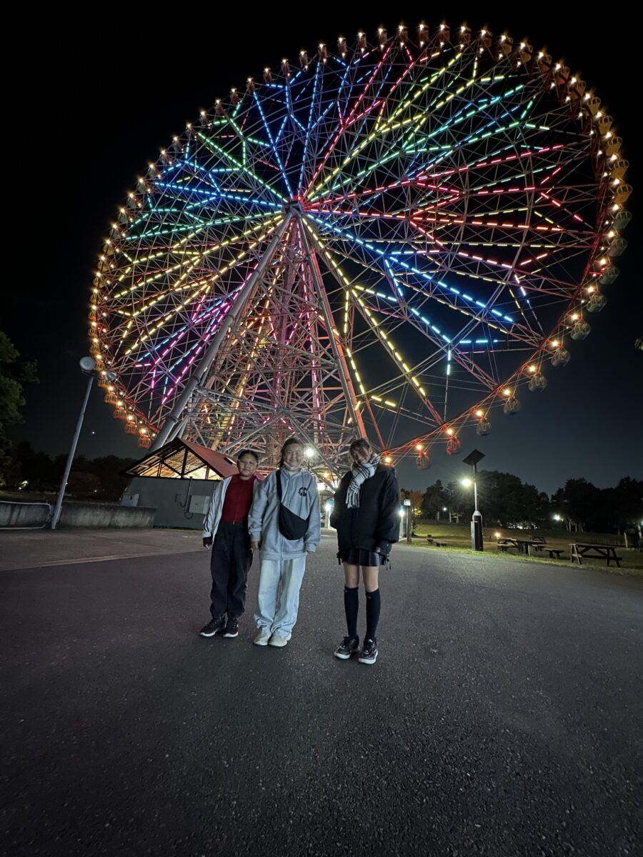 目の前にそびえ立つ大観覧車の大きさに圧倒されていました^^更に綺麗にライトアップされている姿に大興奮!